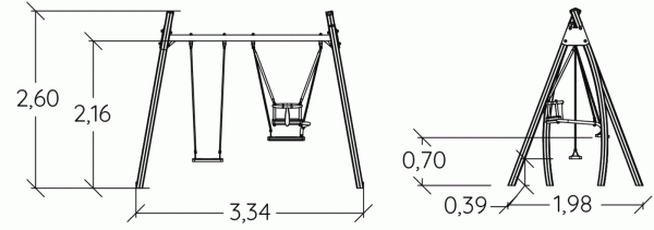 Závesné hojdačky - 1 rodič+dieťa sedák, 1 klasický sedák - J437-C