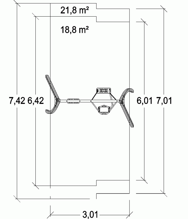 Rozmery modulu sú: 3,30 m dĺžka, šírka 2,00 m, výška 2,60 m. Výška voľného pádu (HCL) je 1,39 metrov.