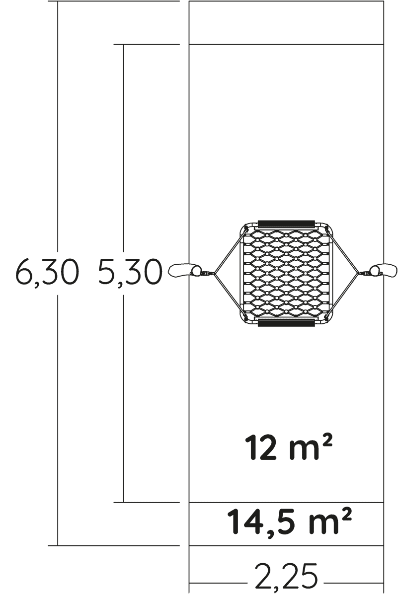 Rozmery modulu sú: 2,64 m dĺžka, šírka 1,22 m, výška 1,57 m. Výška voľného pádu (HCL) je 0,94 metrov.
