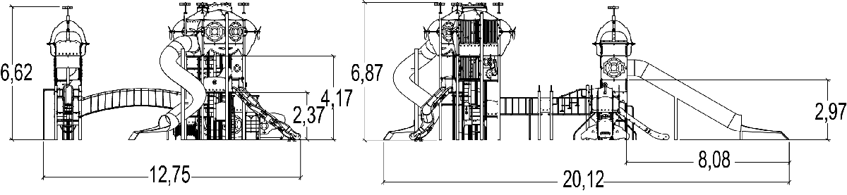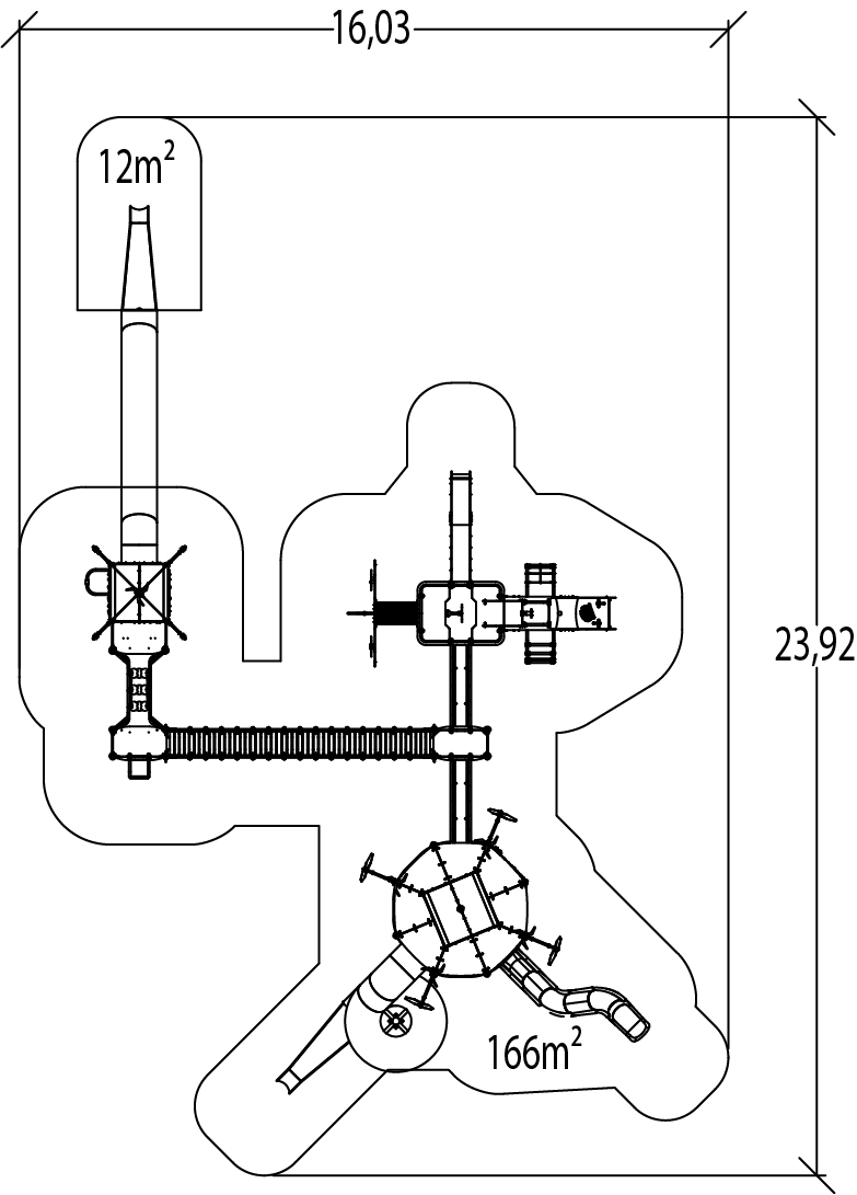 Rozmery modulu sú: 20,00 m dĺžka, šírka 13,00 m, výška 7,00 m. Výška voľného pádu (HCL) je 2,37 metrov.