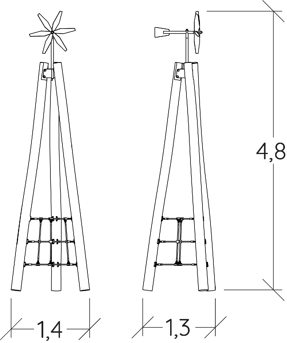 Rozmery modulu sú: 1,40 m dĺžka, šírka 1,30 m, výška 4,80 m. Výška voľného pádu (HCL) je 1,25 metrov.