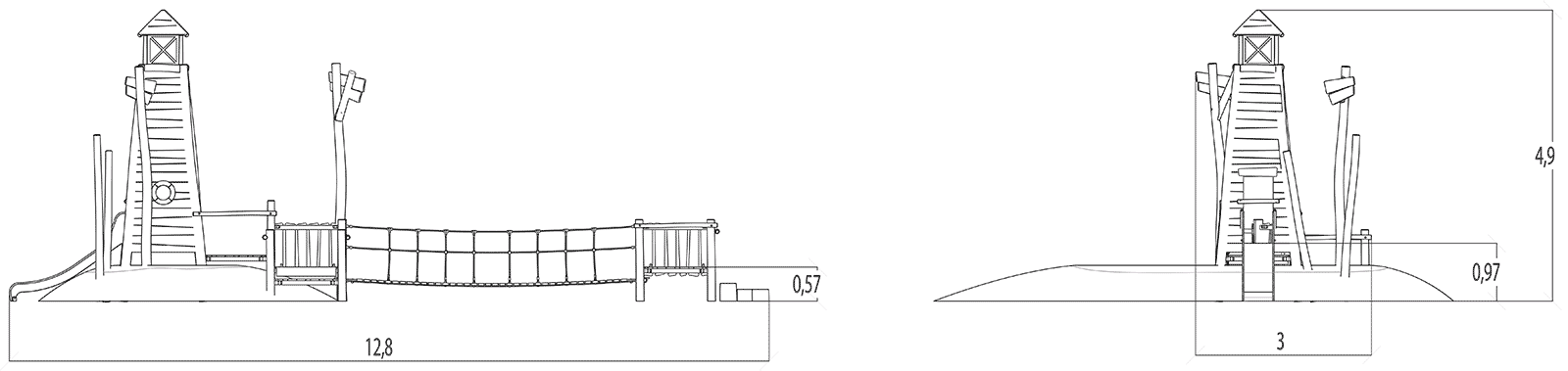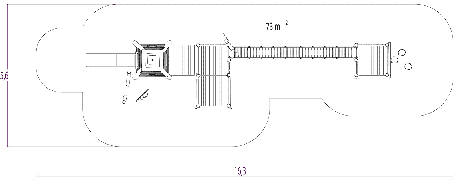 Rozmery modulu sú: 12,80 m dĺžka, šírka 3,00 m, výška 4,90 m. Výška voľného pádu (HCL) je 0,60 metrov.