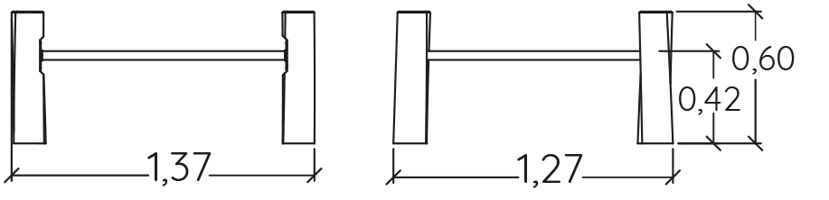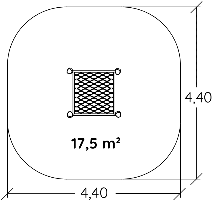 Rozmery modulu sú: 1,36 m dĺžka, šírka 1,26 m, výška 0,60 m. Výška voľného pádu (HCL) je 0,60 metrov.