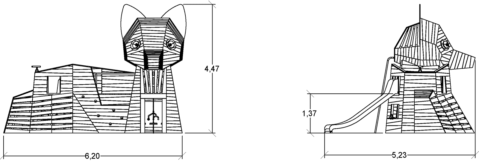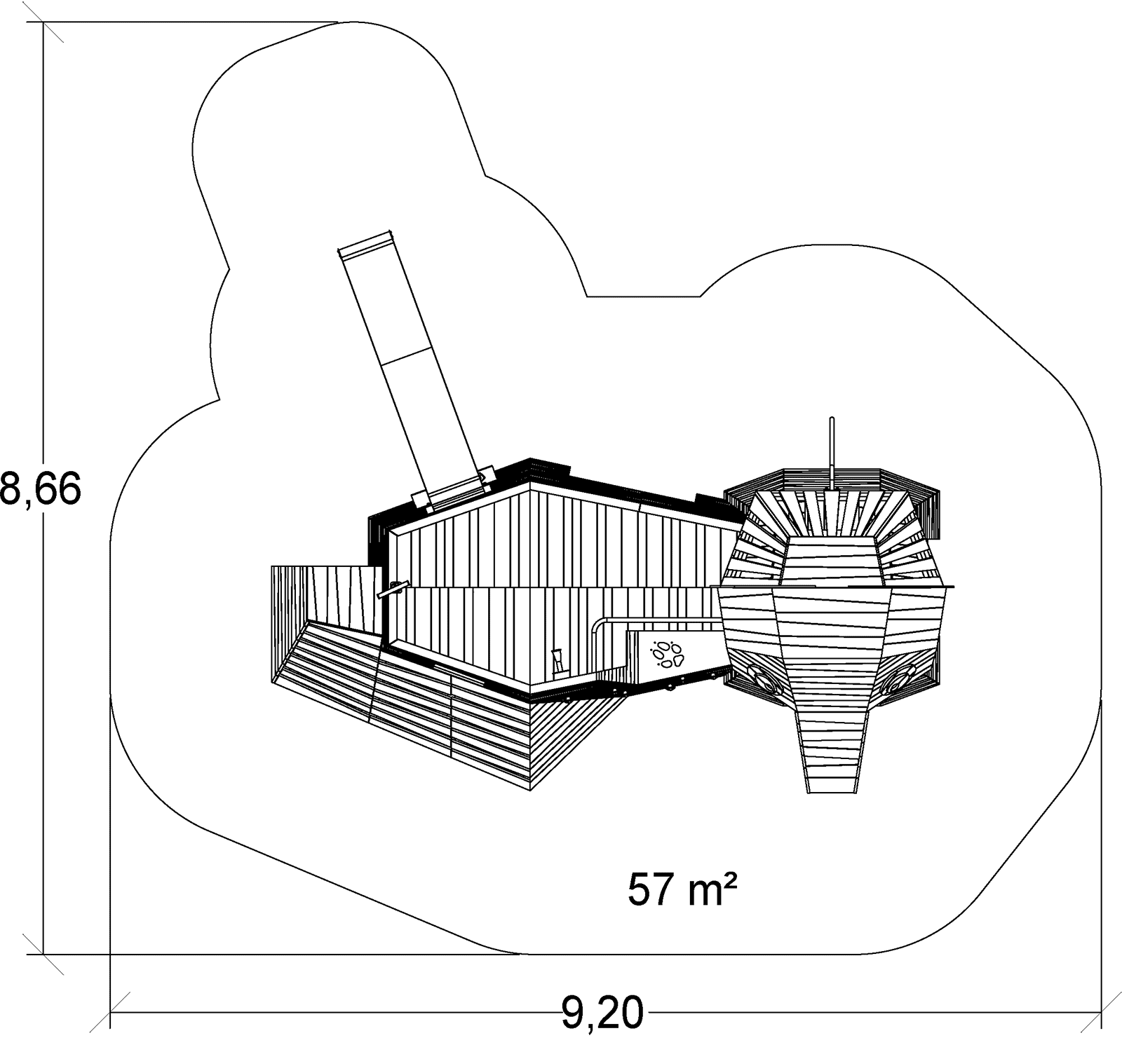 Rozmery modulu sú: 6,20 m dĺžka, šírka 5,23 m, výška 4,47 m. Výška voľného pádu (HCL) je 1,64 metrov.