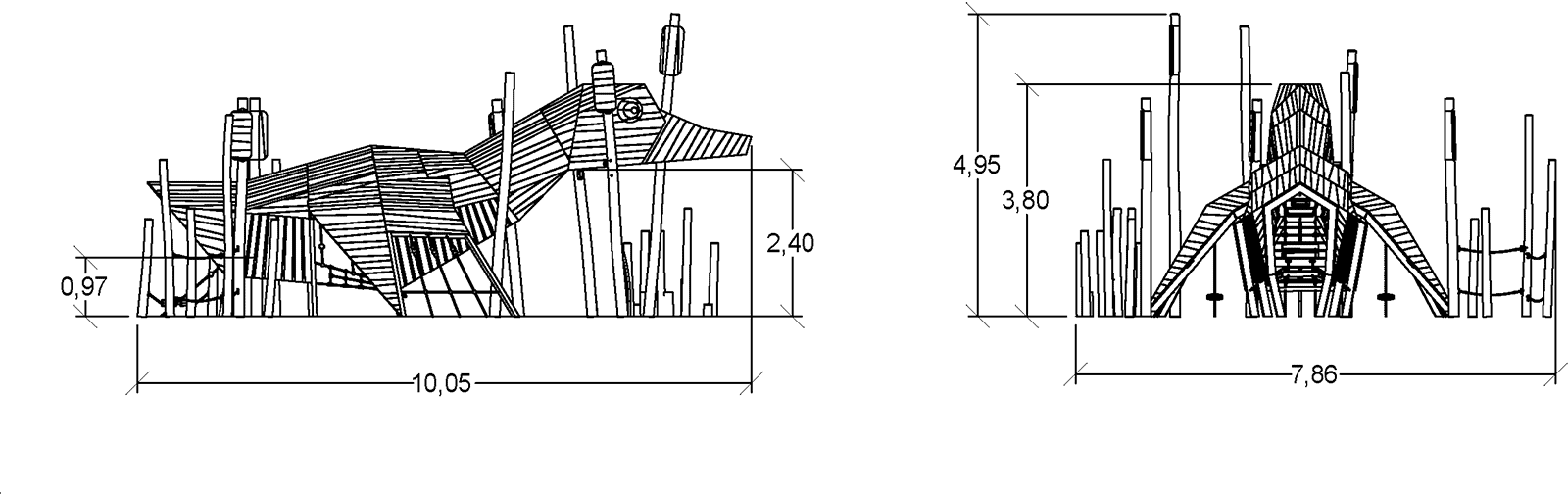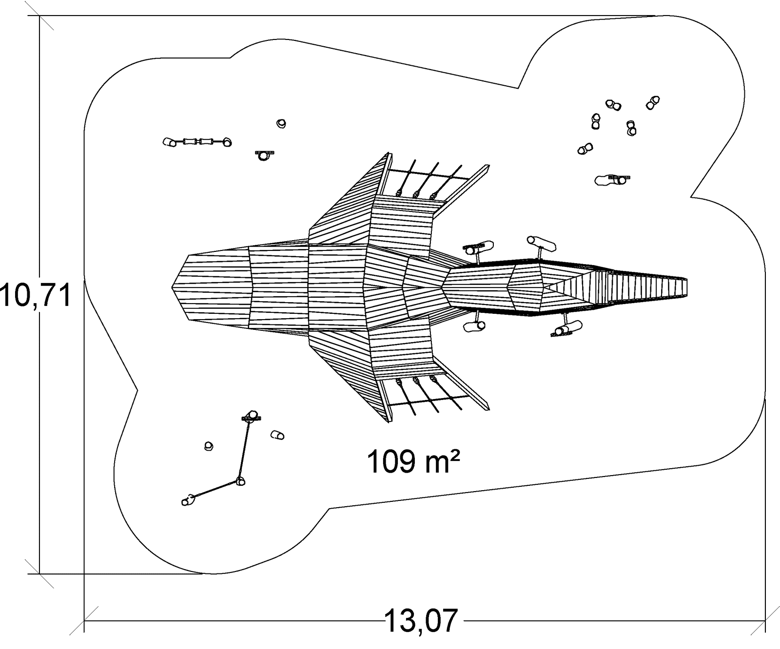 Rozmery modulu sú: 10,05 m dĺžka, šírka 7,86 m, výška 4,95 m. Výška voľného pádu (HCL) je 2,70 metrov.
