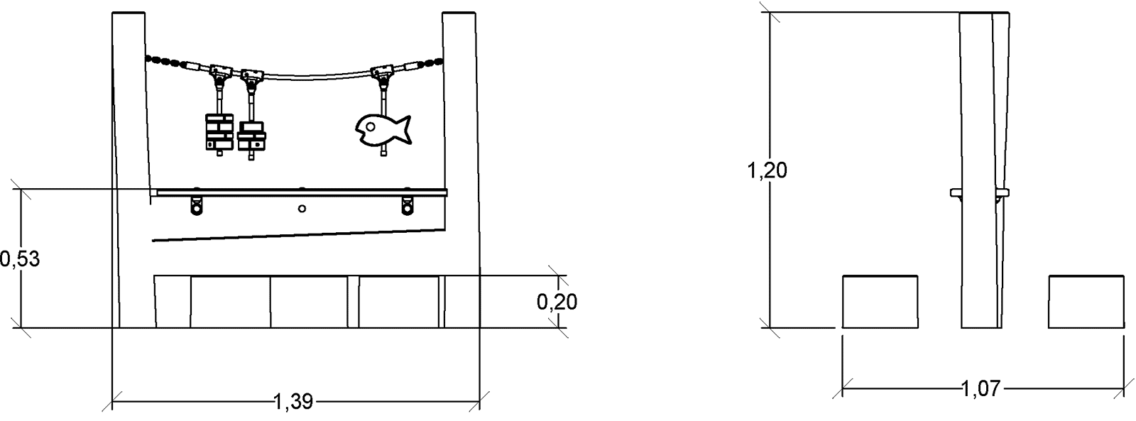 Rozmery modulu sú: 1,39 m dĺžka, šírka 1,07 m, výška 1,20 m. Výška voľného pádu (HCL) je 0,60 metrov.