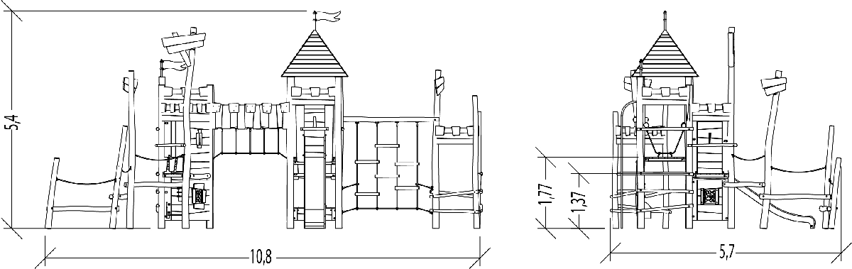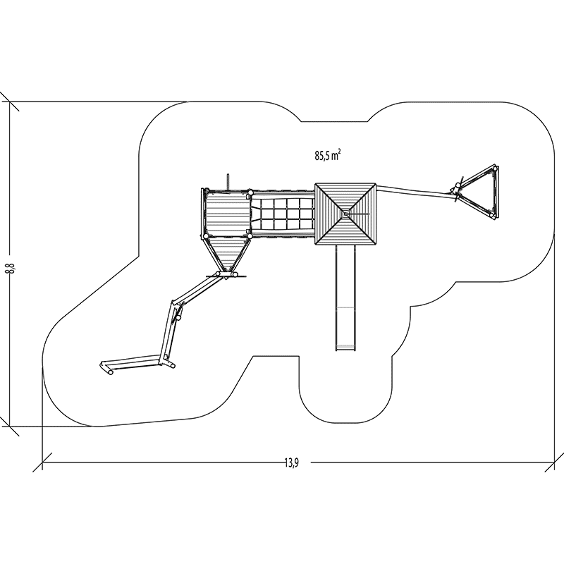 Rozmery modulu sú: 10,80 m dĺžka, šírka 5,70 m, výška 5,40 m. Výška voľného pádu (HCL) je 2,80 metrov.