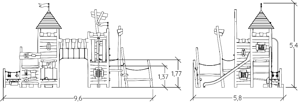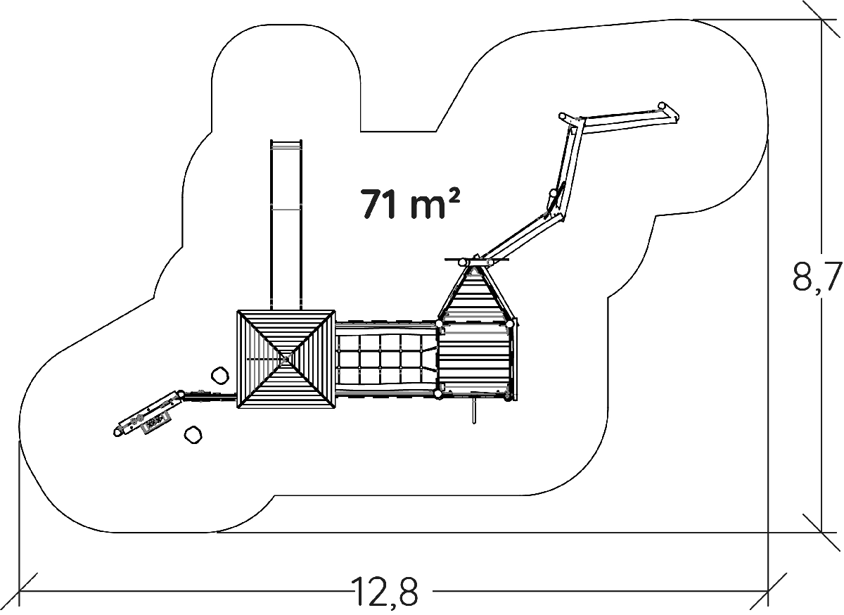 Rozmery modulu sú: 9,60 m dĺžka, šírka 5,80 m, výška 5,40 m. Výška voľného pádu (HCL) je 2,17 metrov.
