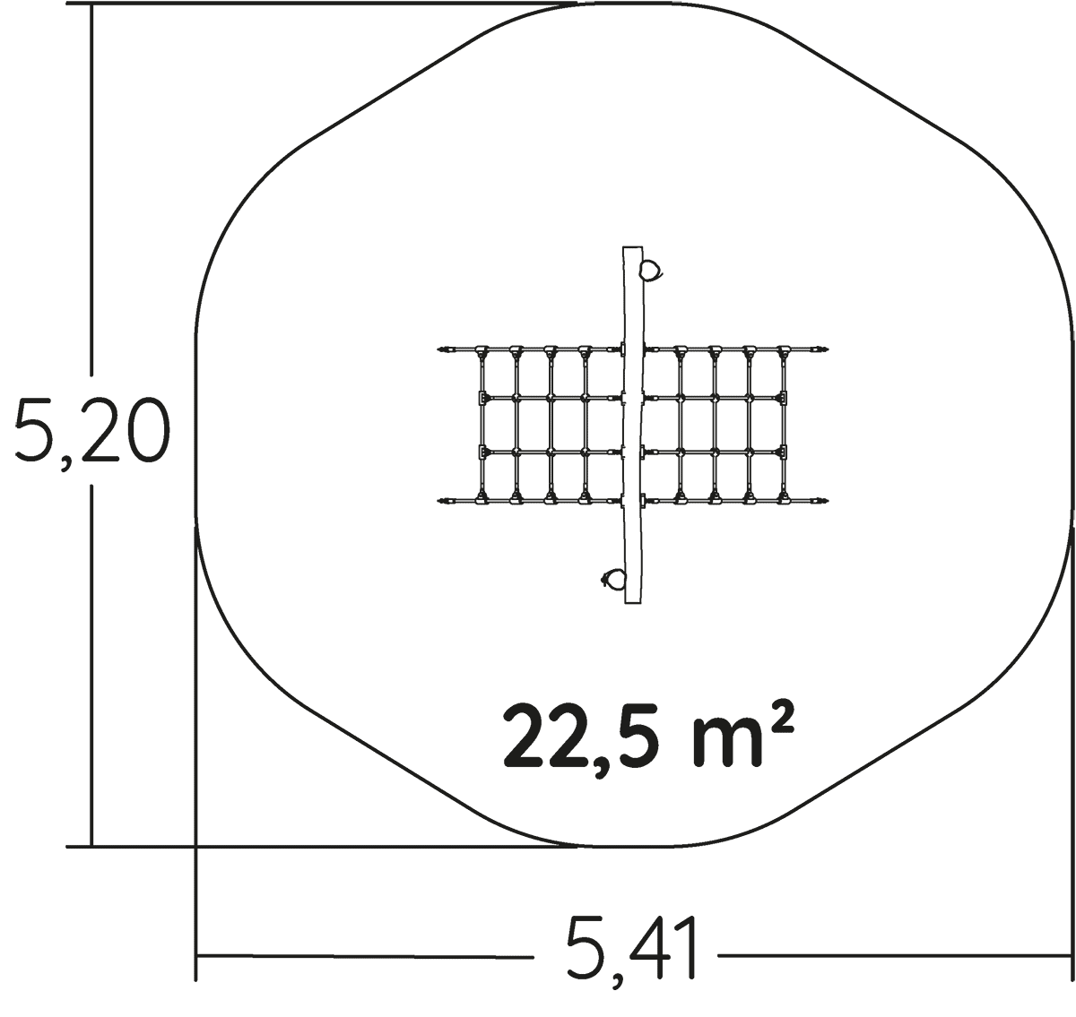 Rozmery modulu sú: 2,20 m dĺžka, šírka 2,41 m, výška 1,20 m. Výška voľného pádu (HCL) je 1,20 metrov.