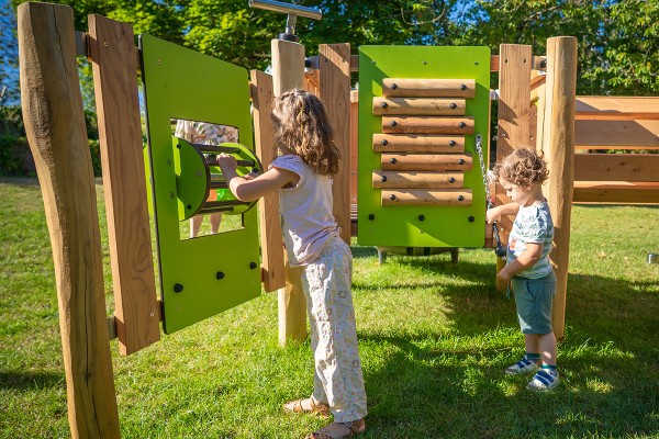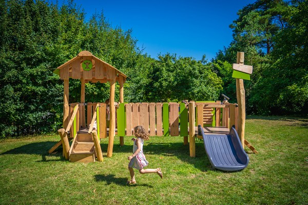 Herná zostava pre menšie deti so šmýkačkou, domčekom a hernými panelmi - J49250®