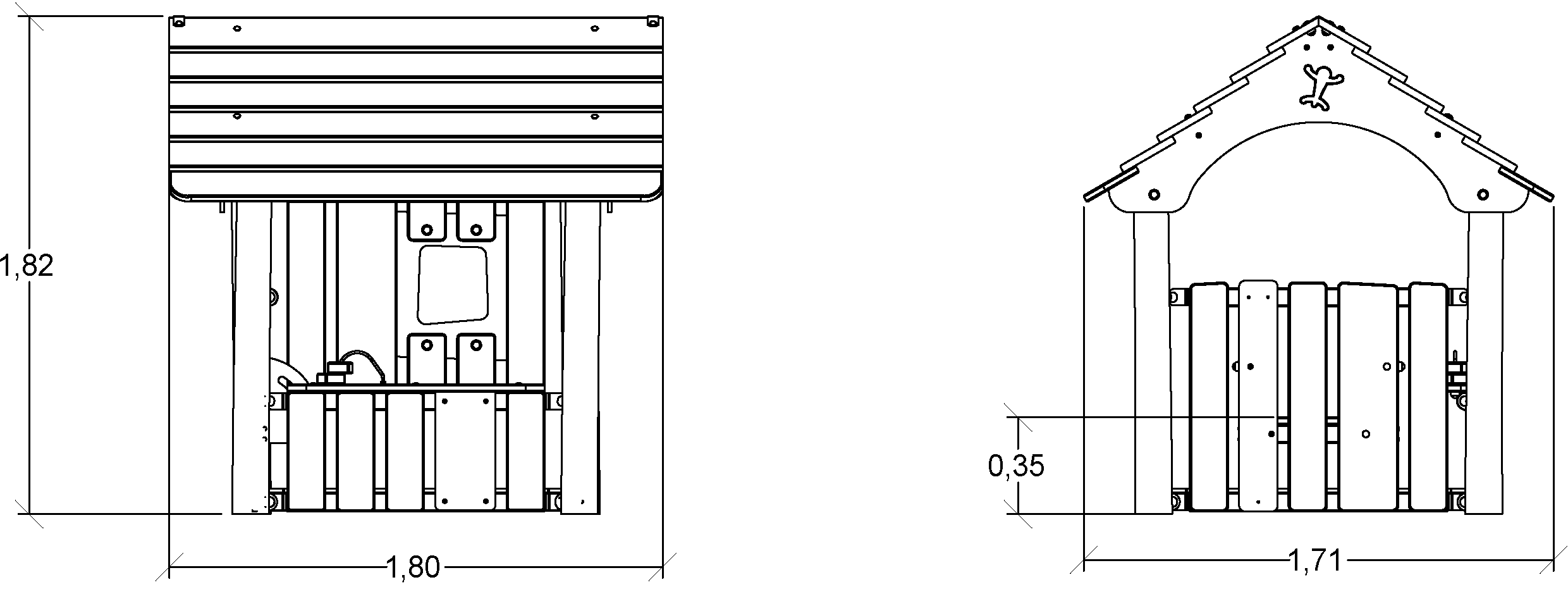 Rozmery modulu sú: 1,80 m dĺžka, šírka 1,71 m, výška 1,82 m. Výška voľného pádu (HCL) je 0,60 metrov.