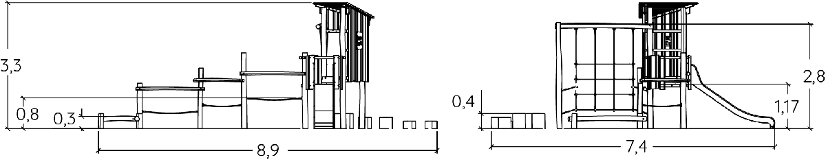 Rozmery modulu sú: 7,40 m dĺžka, šírka 8,90 m, výška 3,30 m. Výška voľného pádu (HCL) je 1,70 metrov.