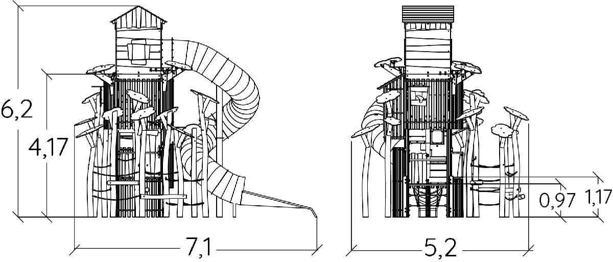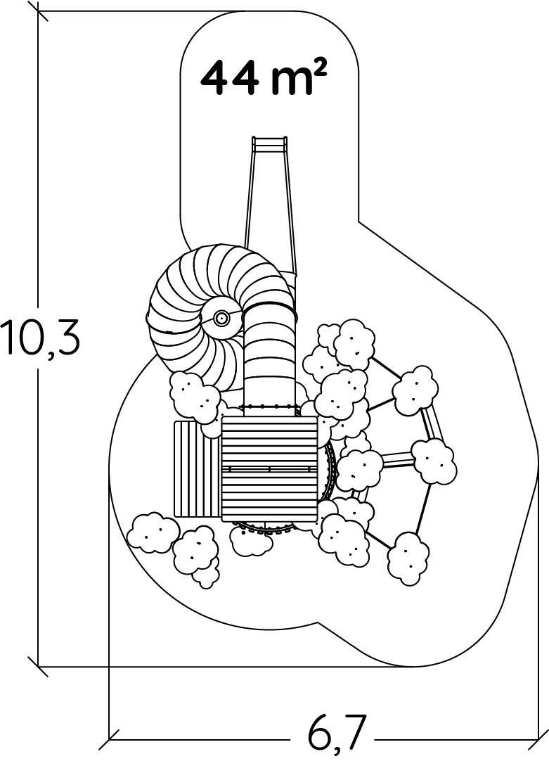 Rozmery modulu sú: 7,10 m dĺžka, šírka 5,20 m, výška 6,20 m. Výška voľného pádu (HCL) je 1,17 metrov.