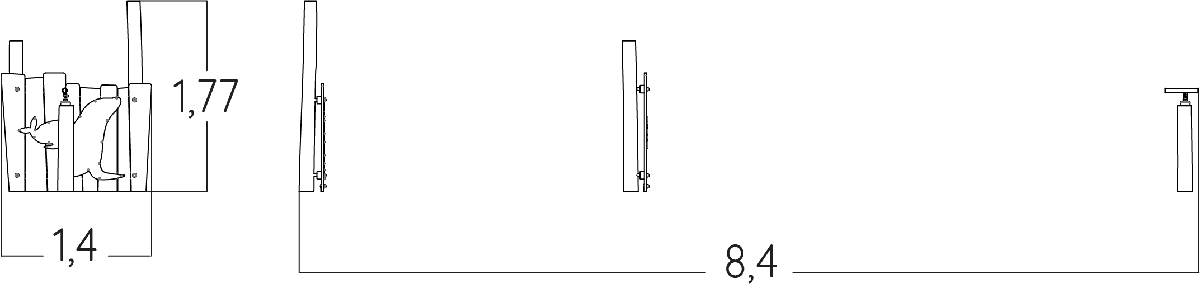Rozmery modulu sú: 8,40 m dĺžka, šírka 1,40 m, výška 1,77 m.