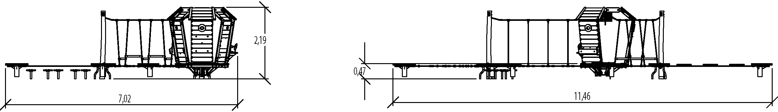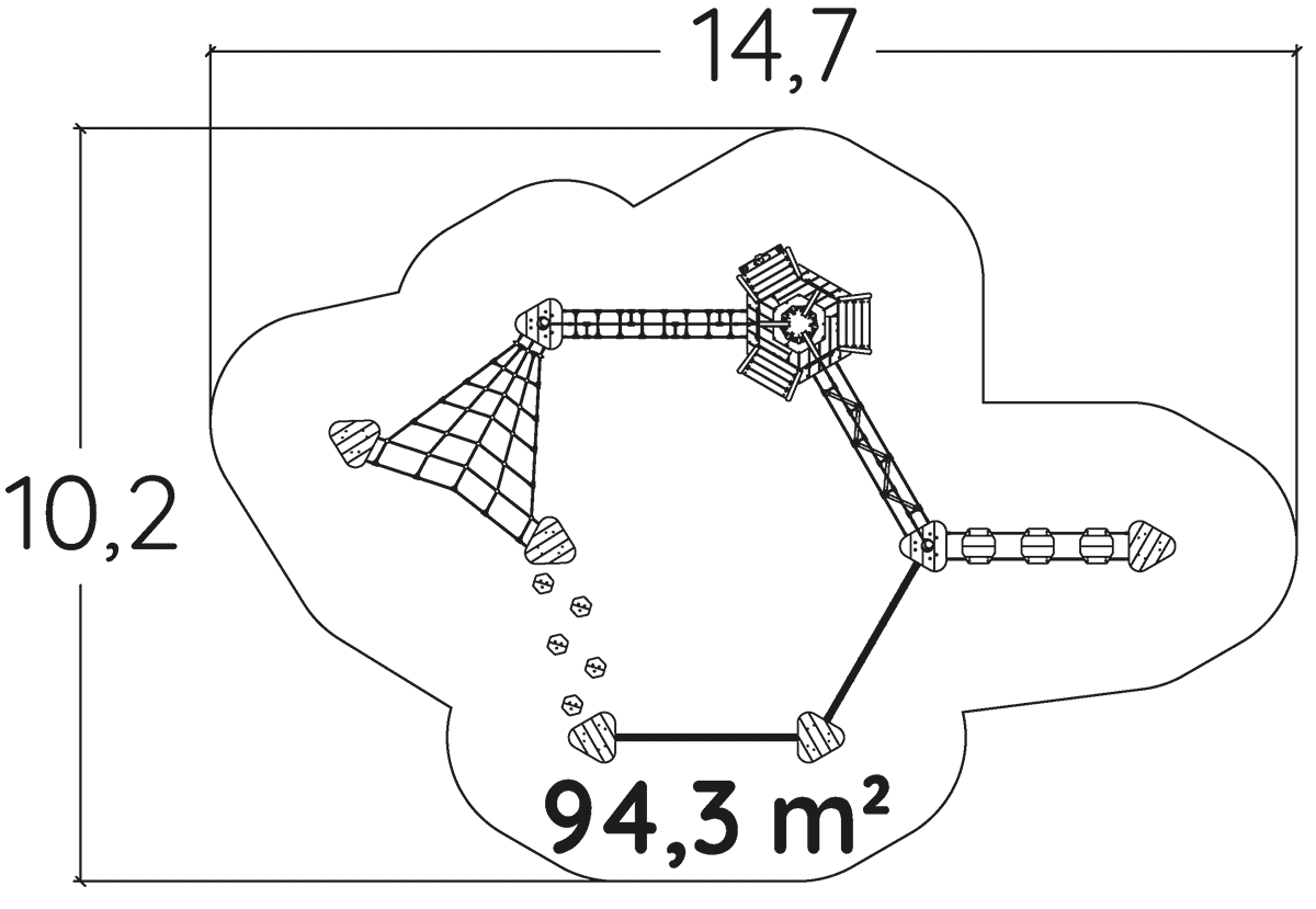 Rozmery modulu sú: 9,20 m dĺžka, šírka 7,02 m, výška 2,17 m. Výška voľného pádu (HCL) je 0,60 metrov.