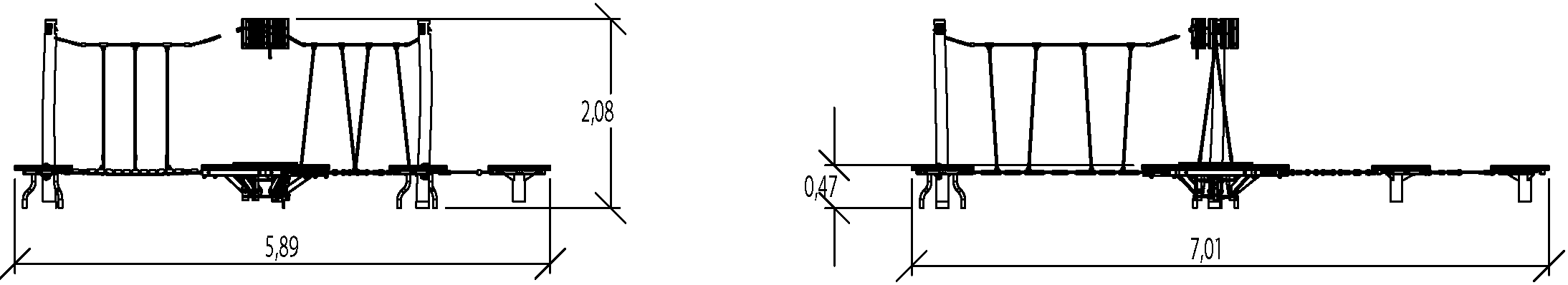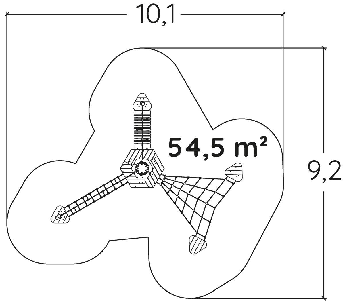 Rozmery modulu sú: 7,01 m dĺžka, šírka 5,89 m, výška 2,08 m. Výška voľného pádu (HCL) je 0,60 metrov.