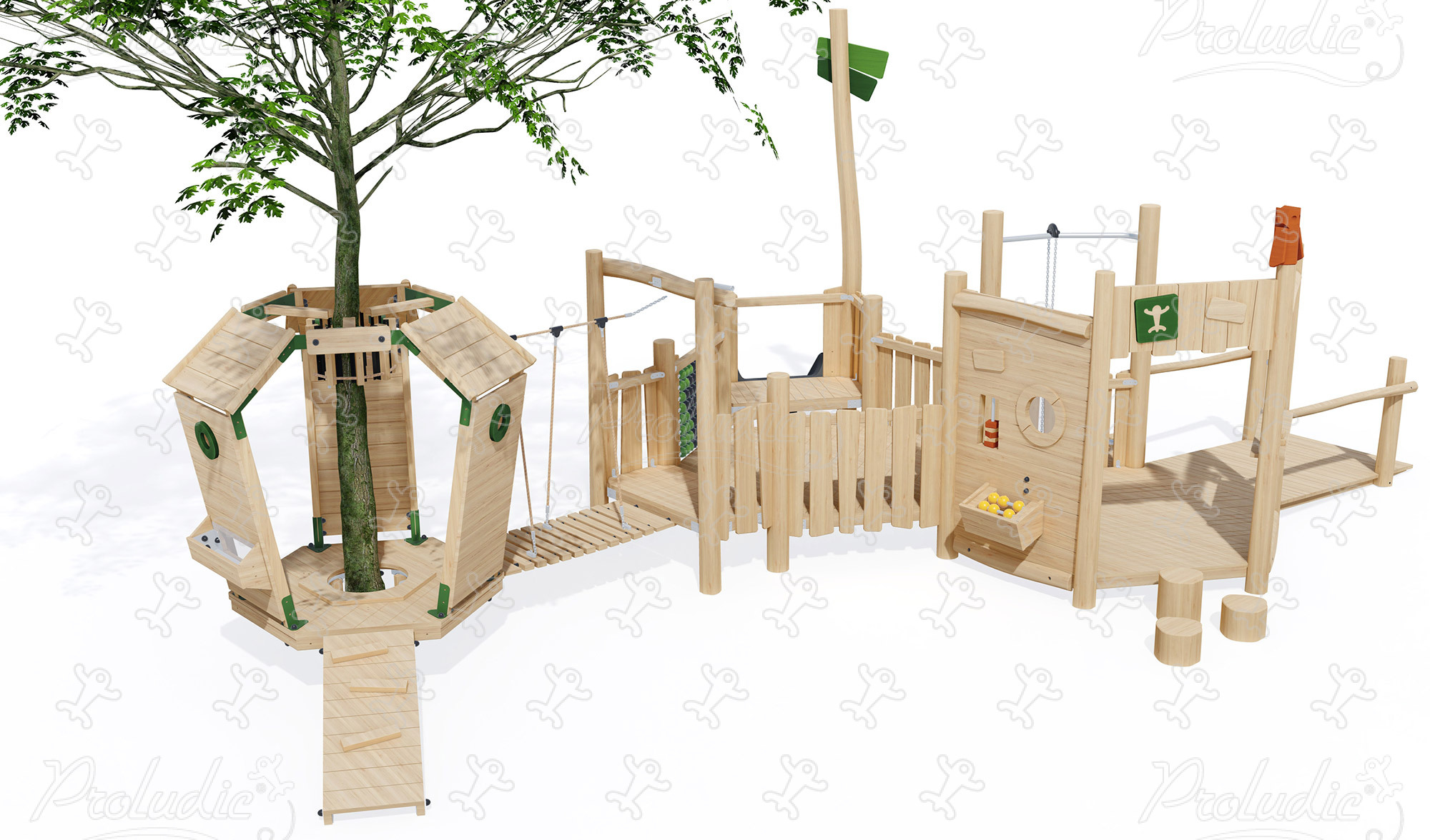 Platforma - inkluzívna spojenáso stromom, s domčekom a šmýkačkou - J49904®