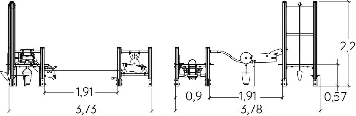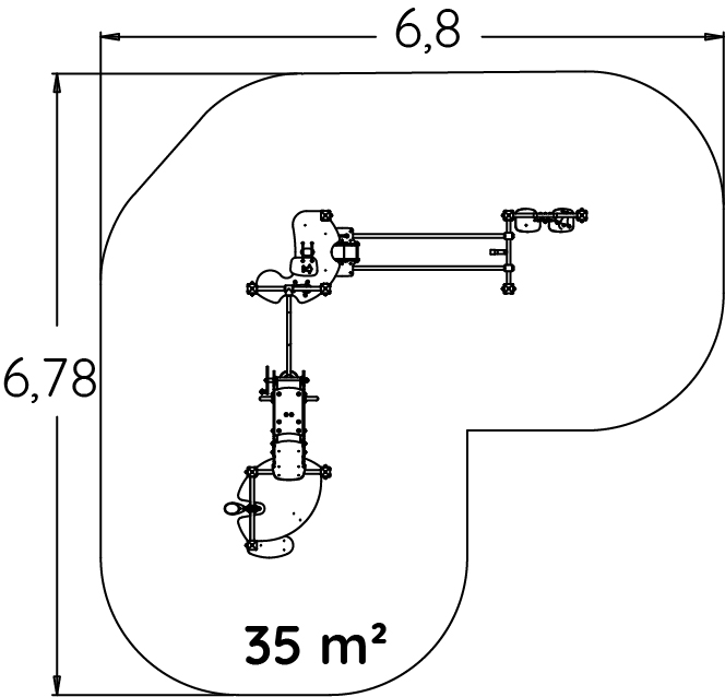 Rozmery modulu sú: 3,80 m dĺžka, šírka 3,80 m, výška 2,20 m. Výška voľného pádu (HCL) je 0,60 metrov.