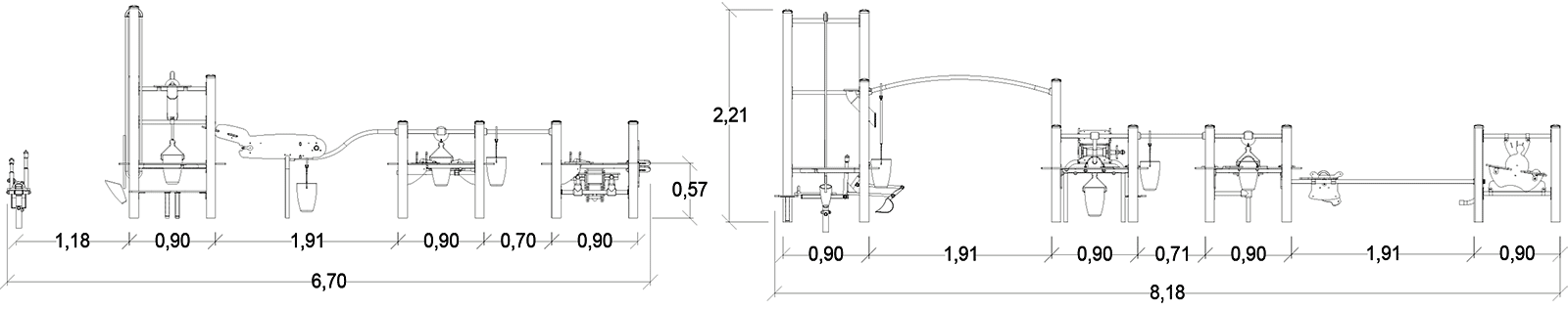 Rozmery modulu sú: 8,10 m dĺžka, šírka 6,55 m, výška 2,20 m. Výška voľného pádu (HCL) je 0,60 metrov.