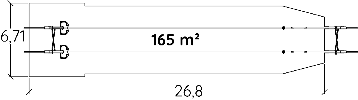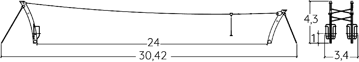 Rozmery modulu sú: 30,42 m dĺžka, šírka 3,40 m, výška 4,30 m. Výška voľného pádu (HCL) je 1,40 metrov.