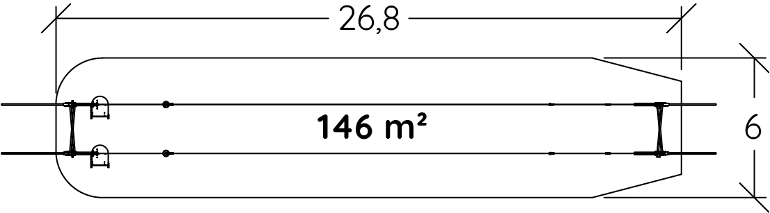 Rozmery modulu sú: 30,57 m dĺžka, šírka 2,43 m, výška 4,19 m. Výška voľného pádu (HCL) je 1,40 metrov.