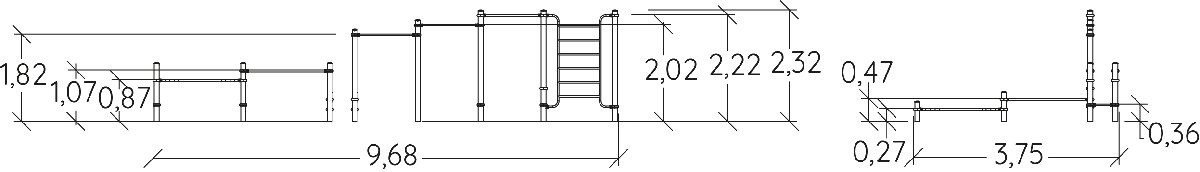 Rozmery modulu sú: 9,68 m dĺžka, šírka 3,75 m, výška 2,32 m. Výška voľného pádu (HCL) je 2,00 metrov.
