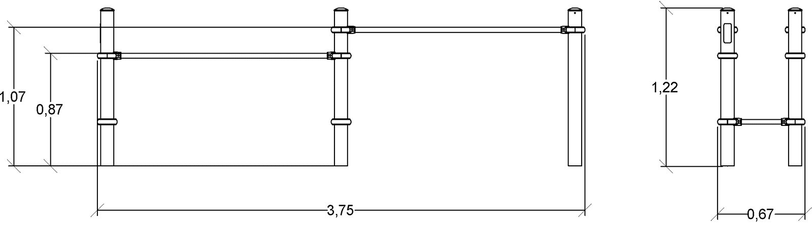 Rozmery modulu sú: 3,75 m dĺžka, šírka 0,67 m, výška 1,22 m. Výška voľného pádu (HCL) je 1,10 metrov.