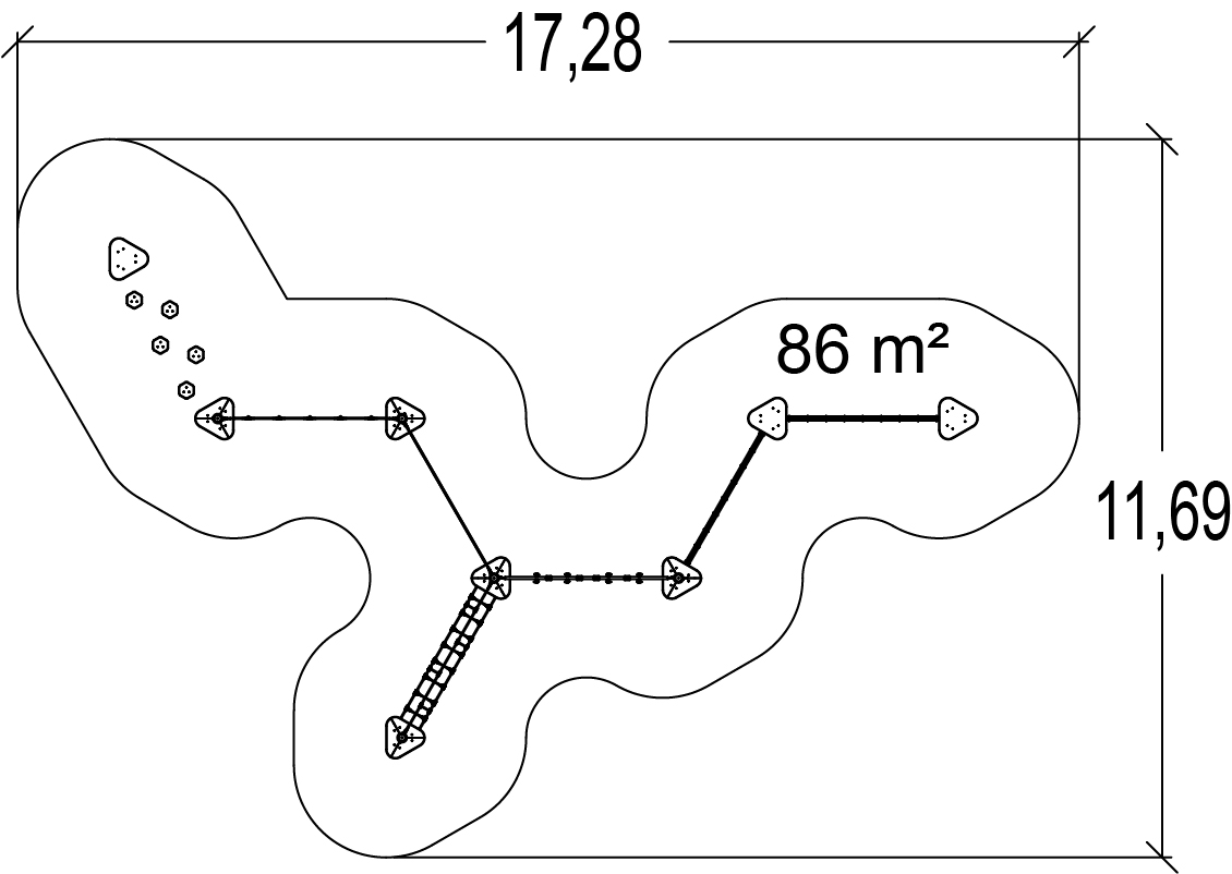 Rozmery modulu sú: 14,15 m dĺžka, šírka 8,46 m, výška 1,80 m. Výška voľného pádu (HCL) je 0,60 metrov.