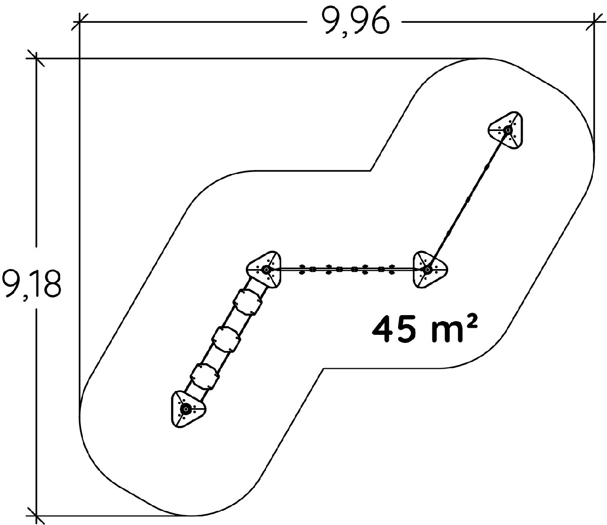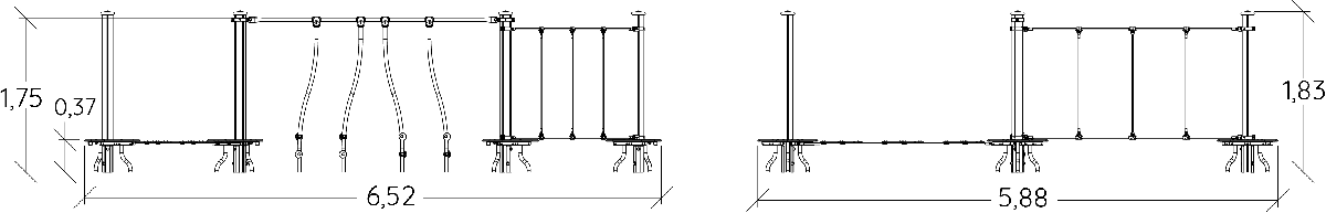 Rozmery modulu sú: 6,52 m dĺžka, šírka 5,87 m, výška 1,84 m. Výška voľného pádu (HCL) je 0,60 metrov.