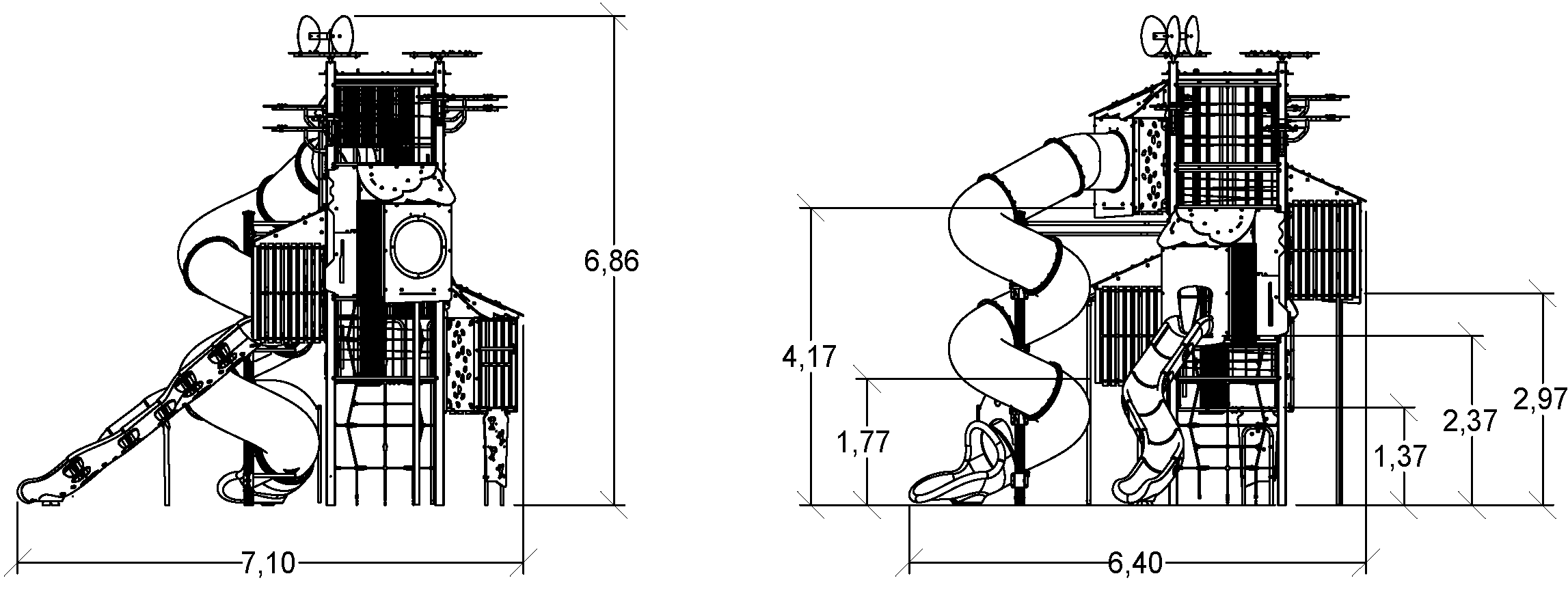 Rozmery modulu sú: 7,10 m dĺžka, šírka 6,40 m, výška 6,86 m. Výška voľného pádu (HCL) je 2,56 metrov.