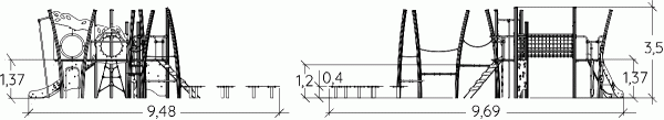 Rozmery modulu sú: 9,69 m dĺžka, šírka 9,48 m, výška 3,50 m. Výška voľného pádu (HCL) je 1,90 metrov.