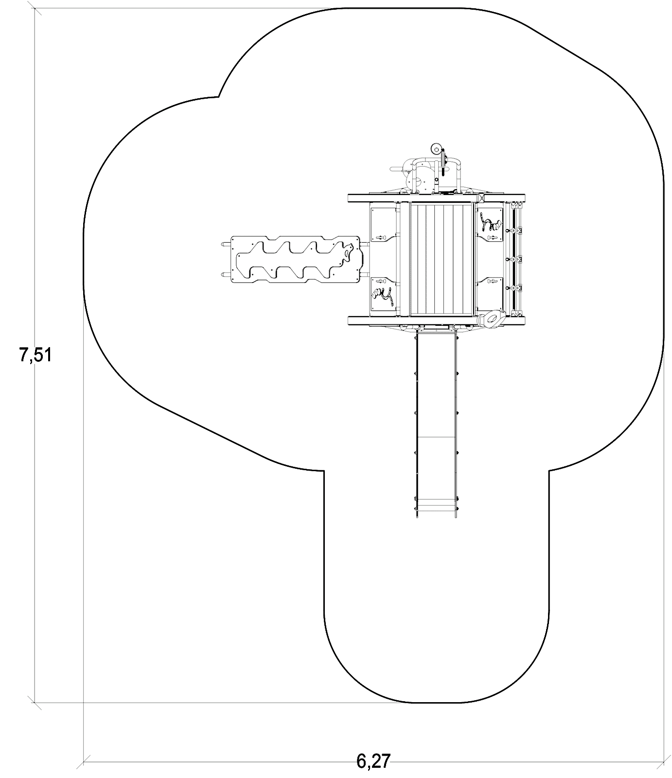 Rozmery modulu sú: 4,01 m dĺžka, šírka 3,28 m, výška 3,36 m. Výška voľného pádu (HCL) je 1,17 metrov.