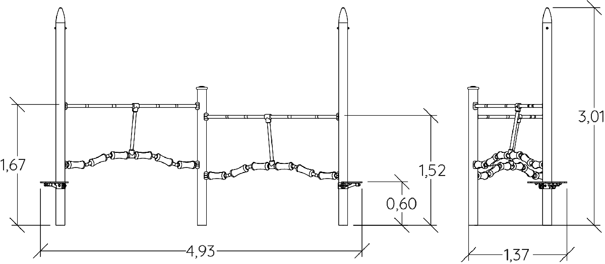 Rozmery modulu sú: 4,93 m dĺžka, šírka 1,37 m, výška 3,01 m. Výška voľného pádu (HCL) je 1,00 metrov.