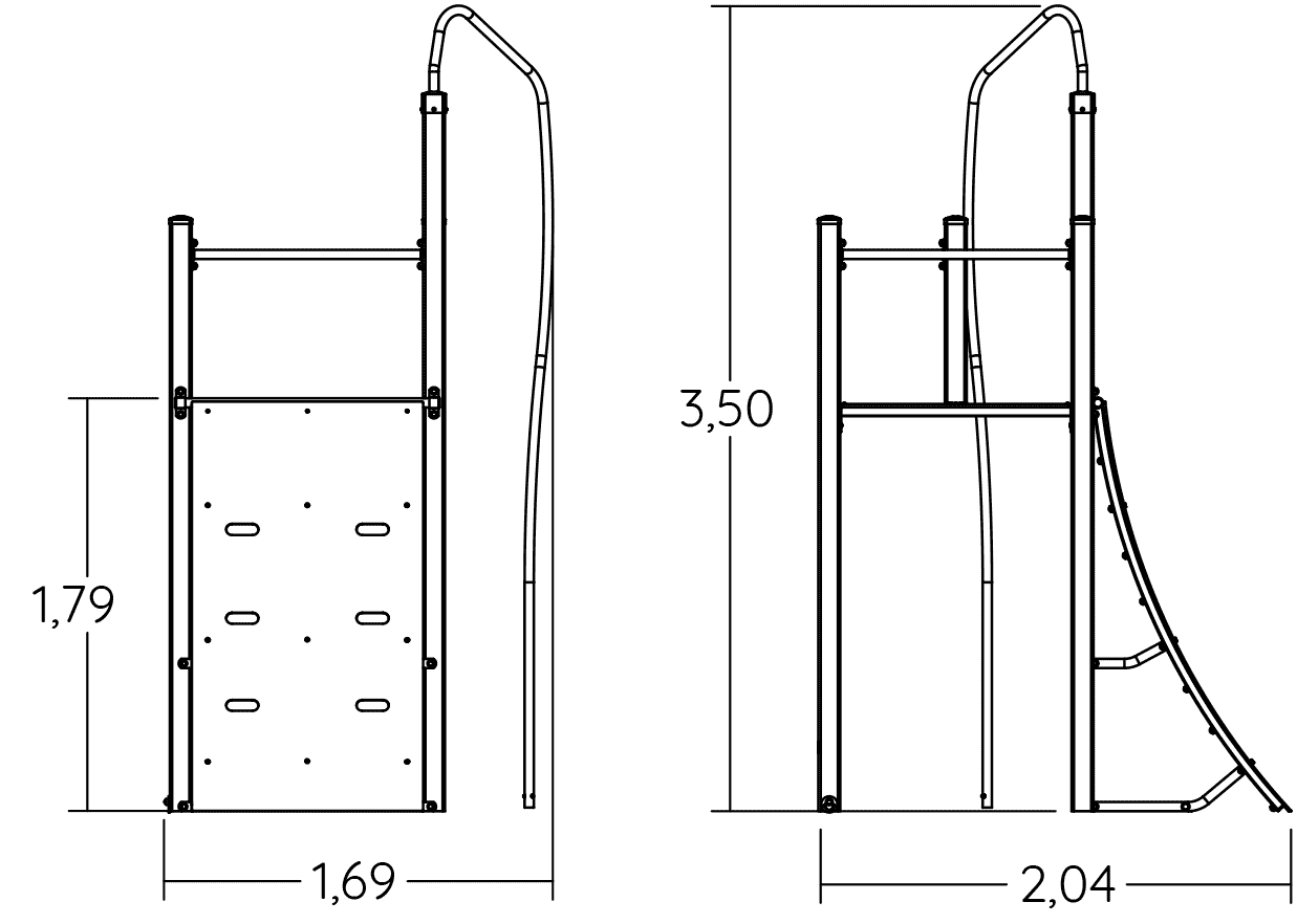 Rozmery modulu sú: 2,06 m dĺžka, šírka 1,67 m, výška 3,50 m. Výška voľného pádu (HCL) je 2,40 metrov.