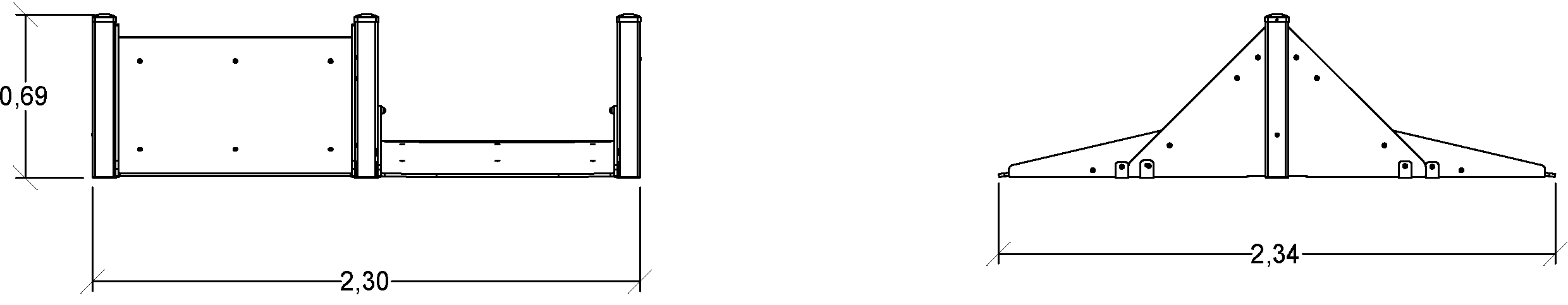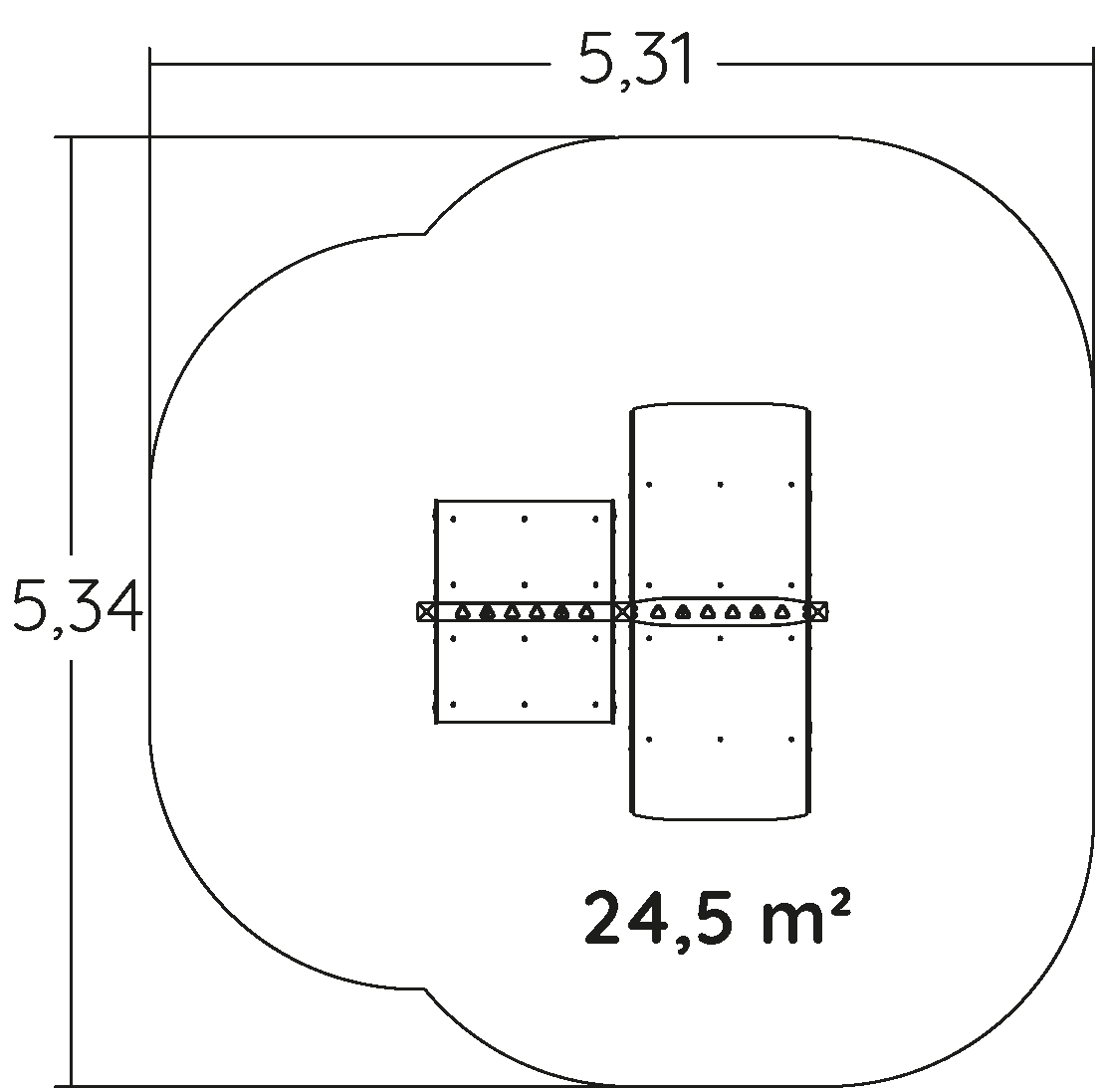 Rozmery modulu sú: 2,34 m dĺžka, šírka 2,30 m, výška 0,68 m. Výška voľného pádu (HCL) je 0,60 metrov.