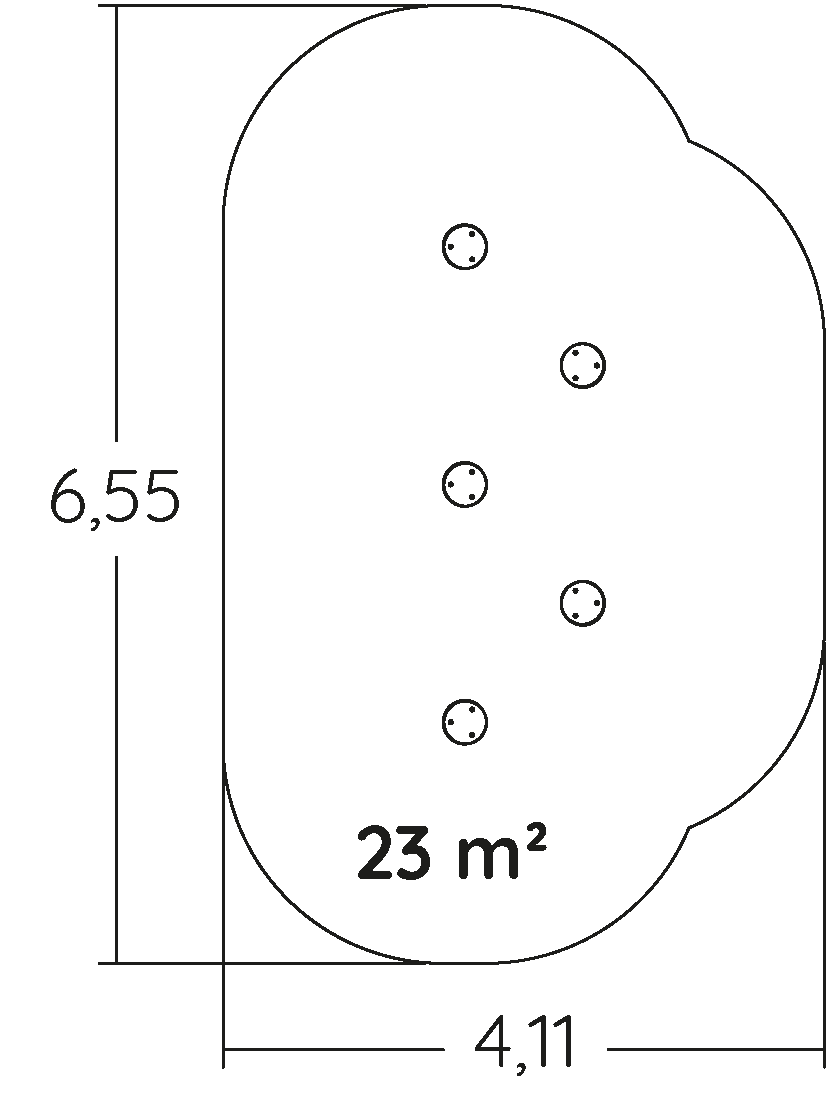 Rozmery modulu sú: 4,85 m dĺžka, šírka 2,30 m, výška 1,45 m. Výška voľného pádu (HCL) je 0,60 metrov.