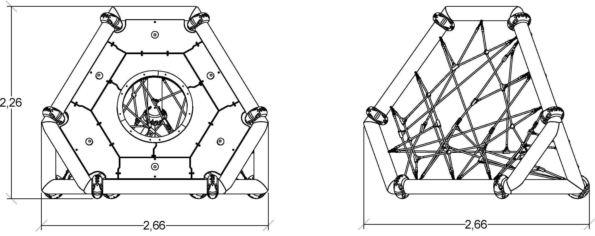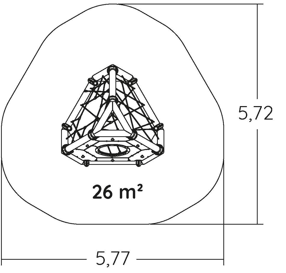 Rozmery modulu sú: 2,66 m dĺžka, šírka 2,66 m, výška 2,26 m. Výška voľného pádu (HCL) je 2,00 metrov.