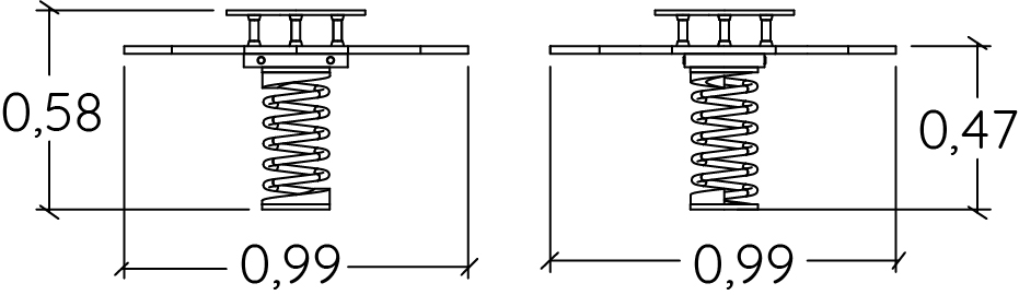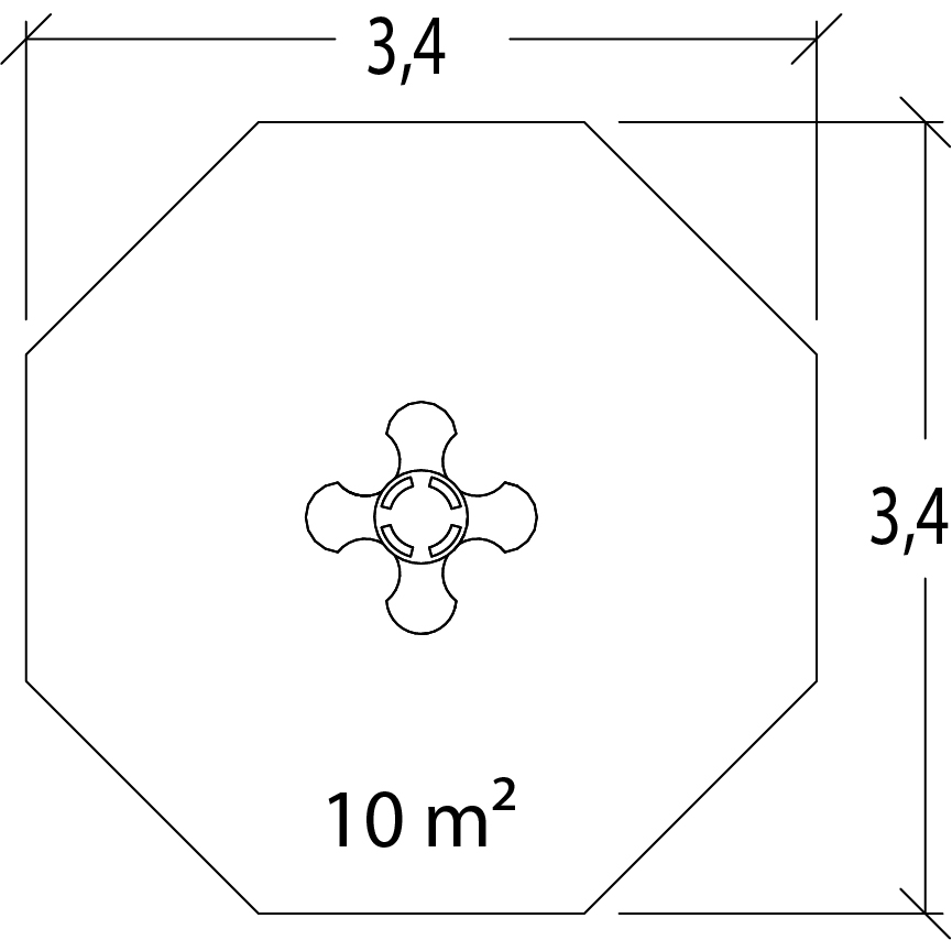 Rozmery modulu sú: 0,99 m dĺžka, šírka 0,99 m, výška 0,57 m. Výška voľného pádu (HCL) je 0,60 metrov.
