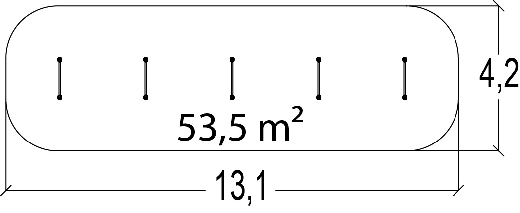 Rozmery modulu sú: 10,10 m dĺžka, šírka 1,20 m, výška 0,61 m. Výška voľného pádu (HCL) je 0,40 metrov.