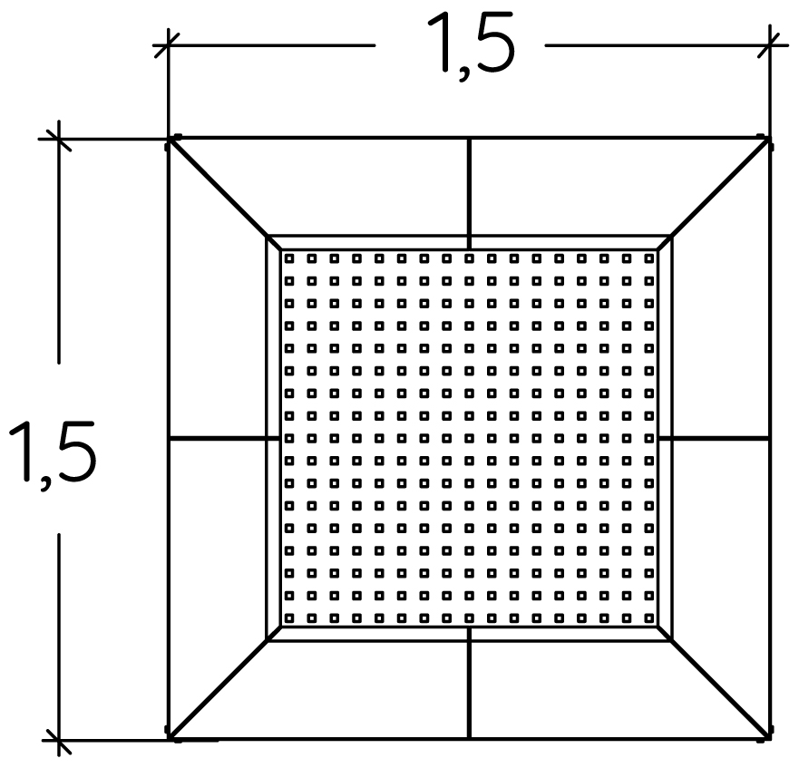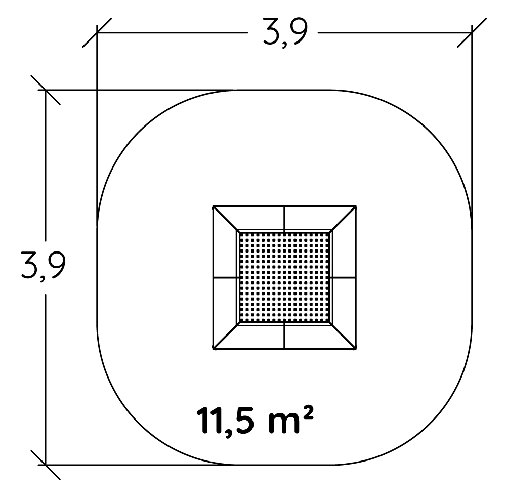 Rozmery modulu sú: 1,50 m dĺžka, šírka 1,50 m, výška 0,03 m. Výška voľného pádu (HCL) je 1,00 metrov.